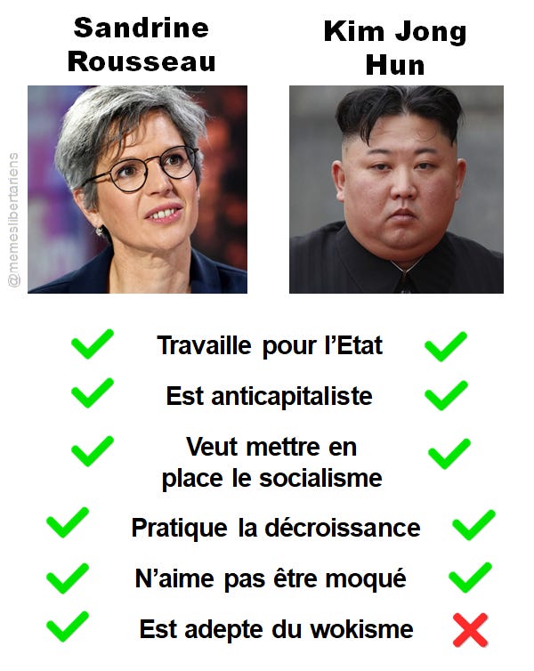 Sandrine Rousseau appartient à cette famille politique marxiste qui voit dans le capitalisme et le libéralisme la cause de tous les malheurs de l’humanité. Chômage et pauvreté en France, dysfonctionnement des services publics, guerres, réchauffement climatique… Tout serait causé selon elle par le système économique reposant sur le droit de propriété et la liberté d’échange, qui domine le monde depuis l’aube des sociétés humaines. On n’entendra cependant jamais cette dernière critiquer le communisme en URSS, malgré son échec dans à peu près toutes les sphères de la société, à commencer par la lutte contre la pauvreté.